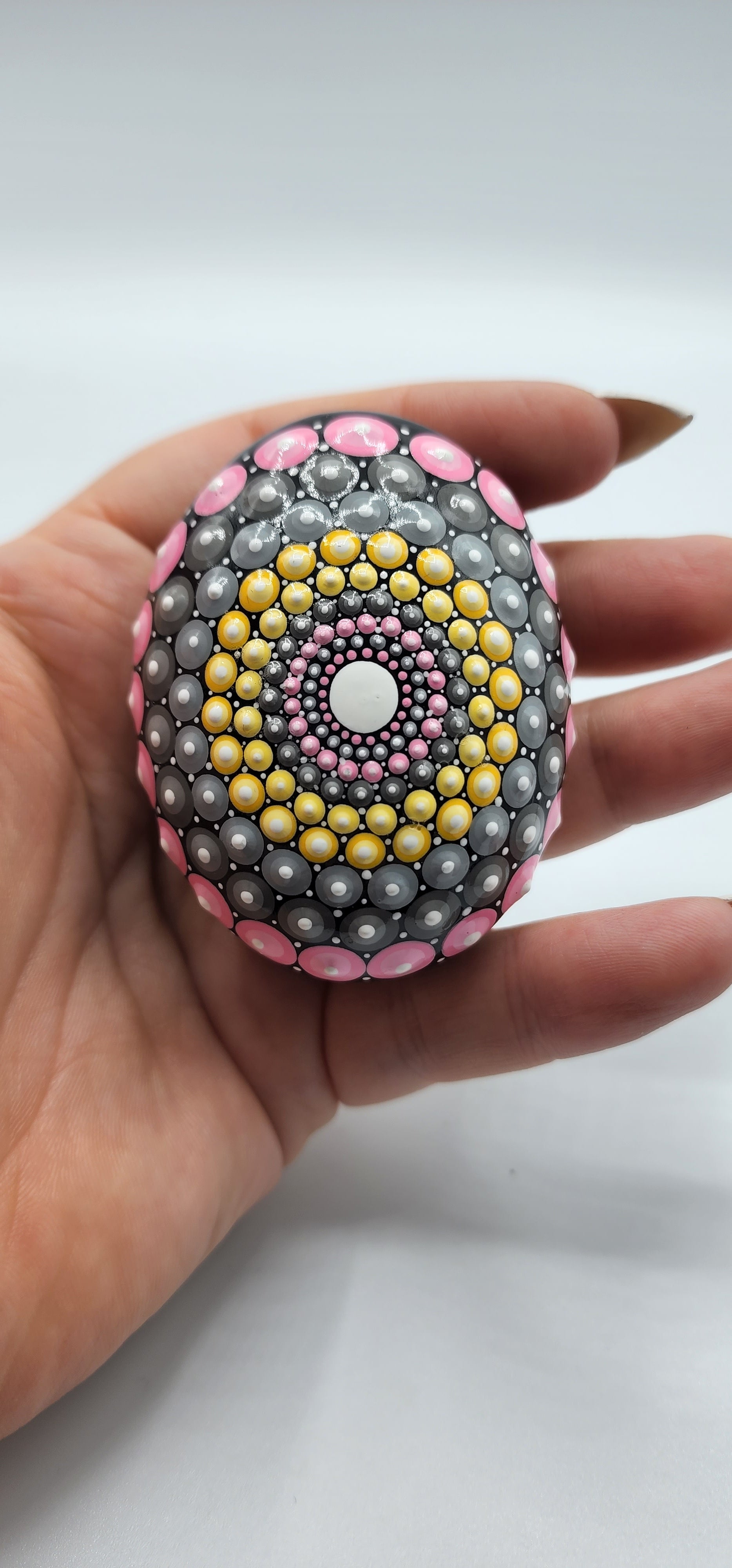 Celina Miller Art - Pink and Yellow Mandala Stone