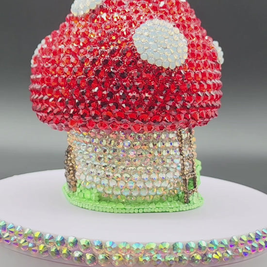 This hand made 3D printed magical, mythical mushroom house, complete with chimney, ladder, bushes, door and window is absolutely adorable in full bling. High quality glass rhinestones applied after being hand painted. This house is perfect for any fairy tale creatures living in your home.