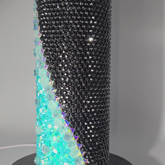 The tumblers are done lovingly, one single rhinestone at a time, they are a luxury item and take anywhere from 10-20 hours each one.